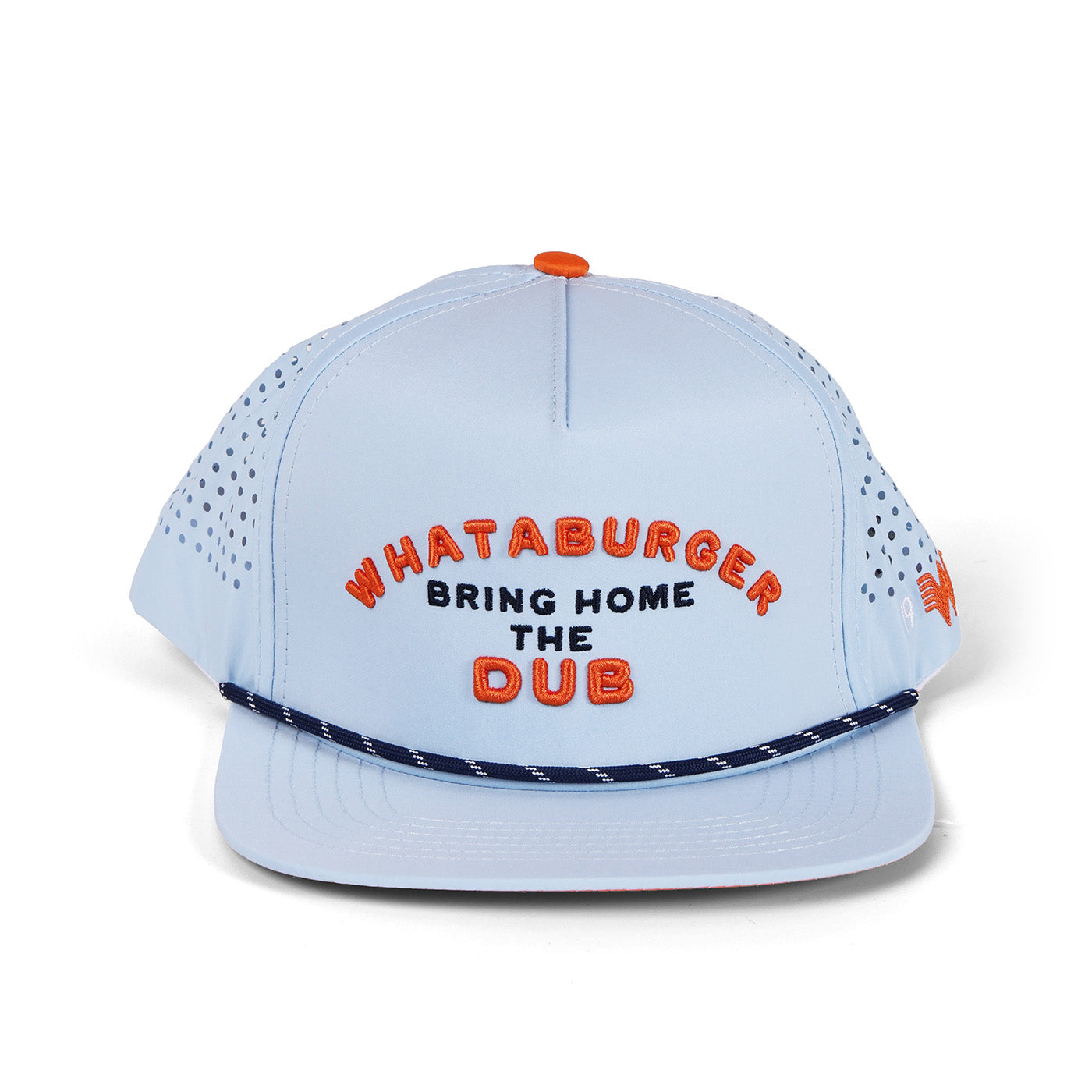 Rock the Whataburger spirit with this light blue Bring Home The Dub Staunch Collection hat. Featuring embroidered branding on the front and a bold orange underbill, it's the perfect way to rep your favorite burger spot with style. Whether you're heading to the game or just grabbing a meal, this cap brings that winning attitude wherever you go.