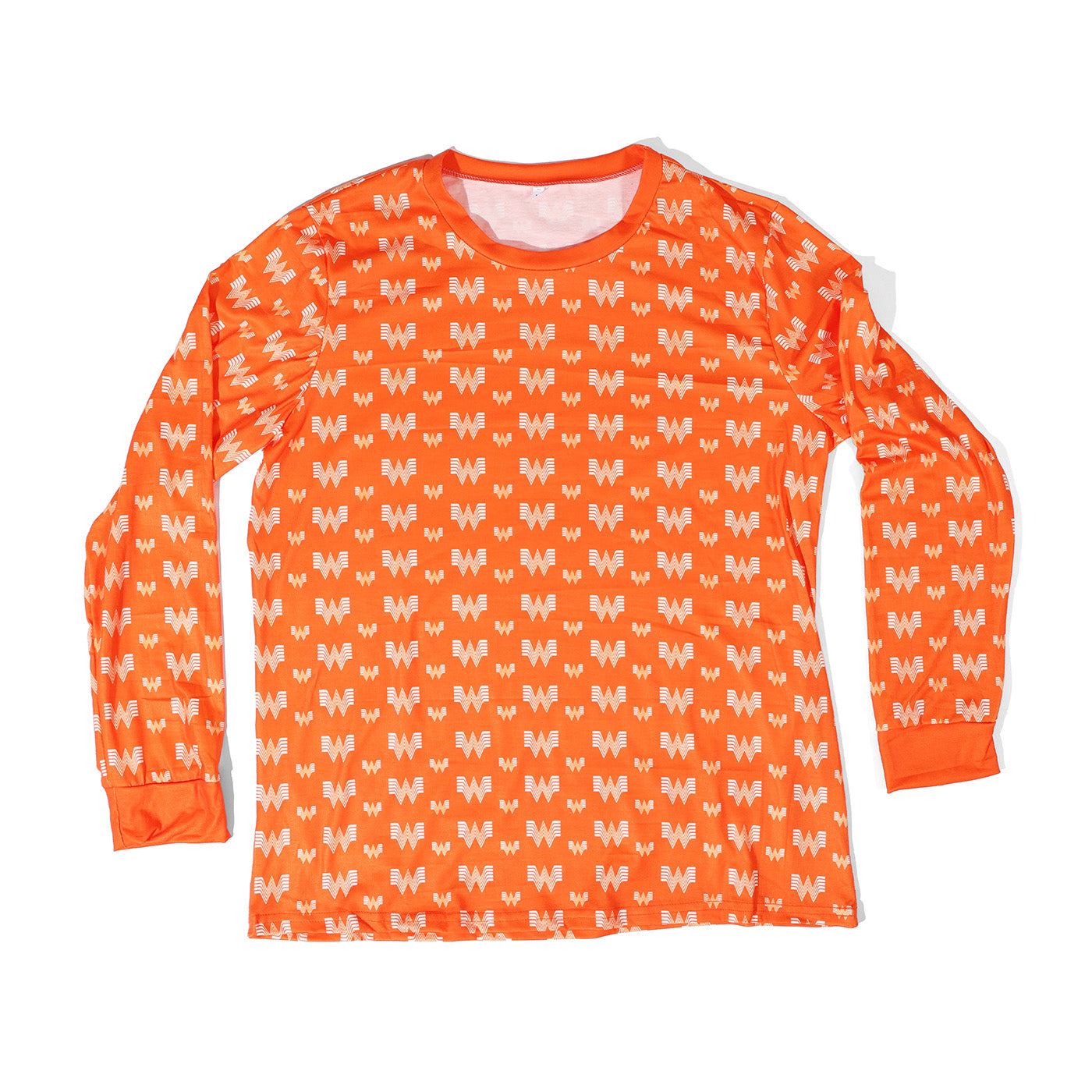 Get ready to meet the 2025 Pajama Set - made for the whole family! Be delighted by the one-of-a-kind orange and white look and the playful repeating print. These PJs have cuffed sleeves and wide leg bottoms for maximum comfort. Gather the squad and enjoy some stylish snuggles!